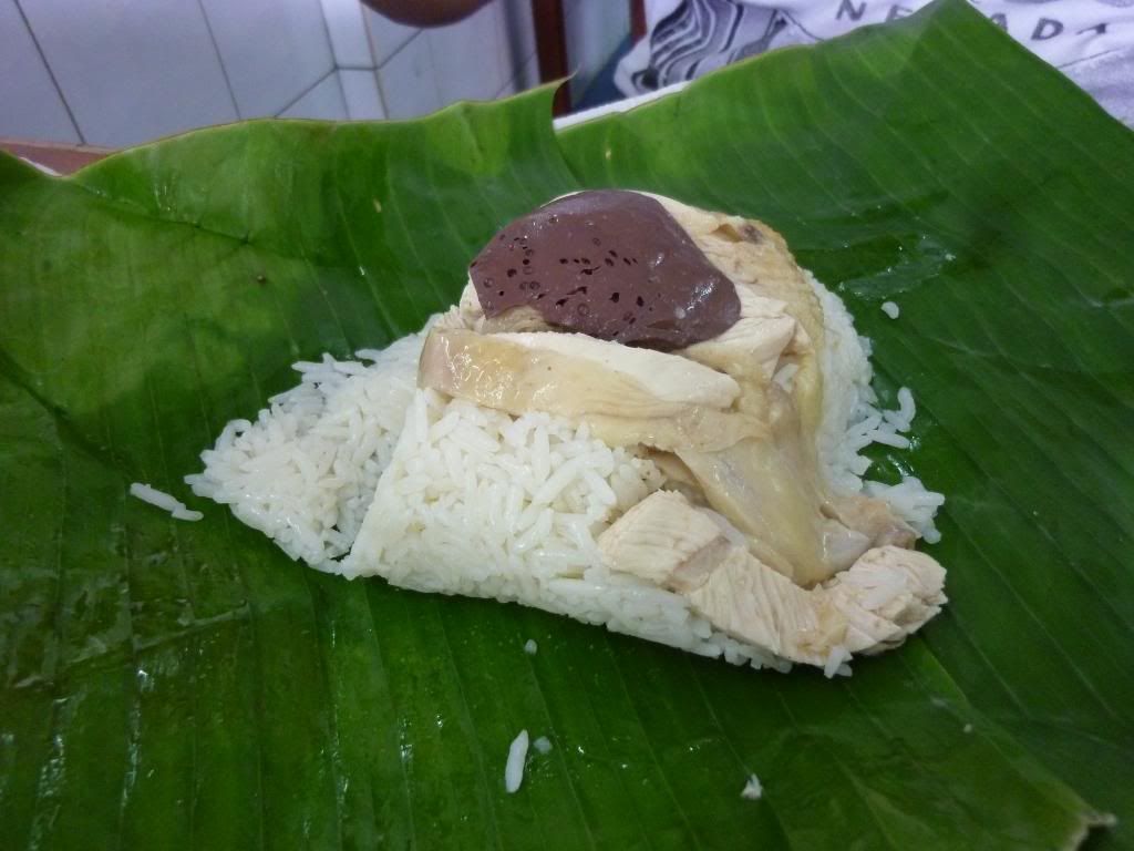 同場加映,隔鄰清發鷄飯,光就用芭蕉葉裹着鷄肉、鷄紅和米飯已夠吸引,只是有人太貪心,將另附的醬油、青辣醬都通通淋上去吃...太重口味了吧!