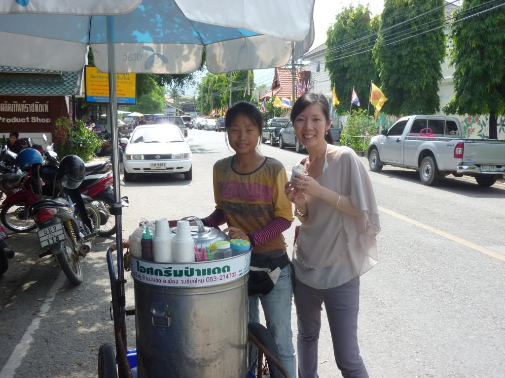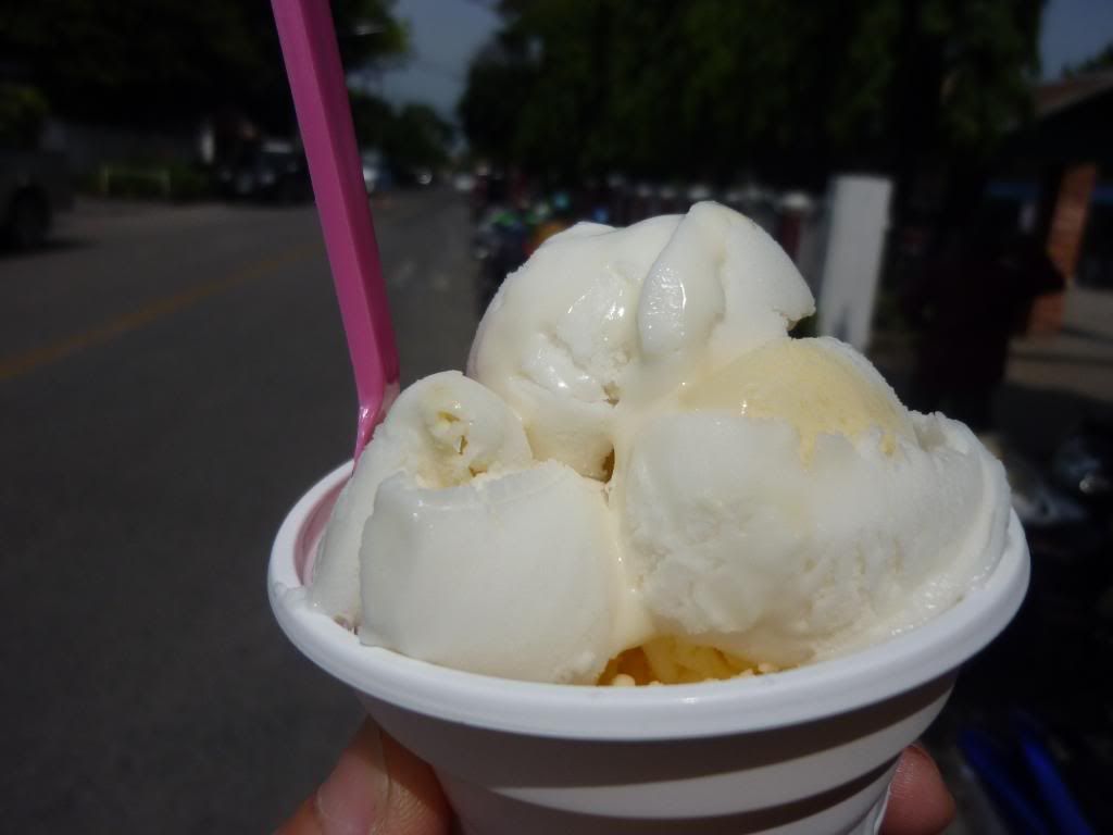 門口有賣我愛的椰子雪糕,綿綿的。不甜又香滑,再淋上花奶,呵呵呵!才10bhat但美味極了,我愛死清邁!