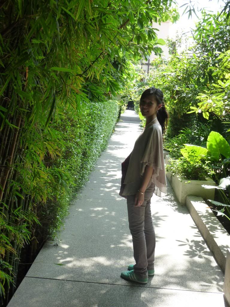 通過這條滿有意景的竹林,就是房間的大樓。如果前面這位先生是名文人雅士有多好...酒店很注重綠化,也在每棵樹都掛上它們的名稱。