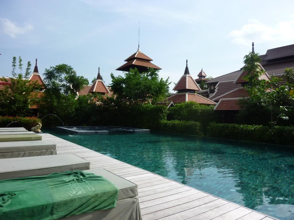選擇Siripanna還有因為我喜歡它的泳池,晒太陽的sun lounge一排的放在像個島的地方,泳池則是一個四方框的、像護城河般圍着這個島。