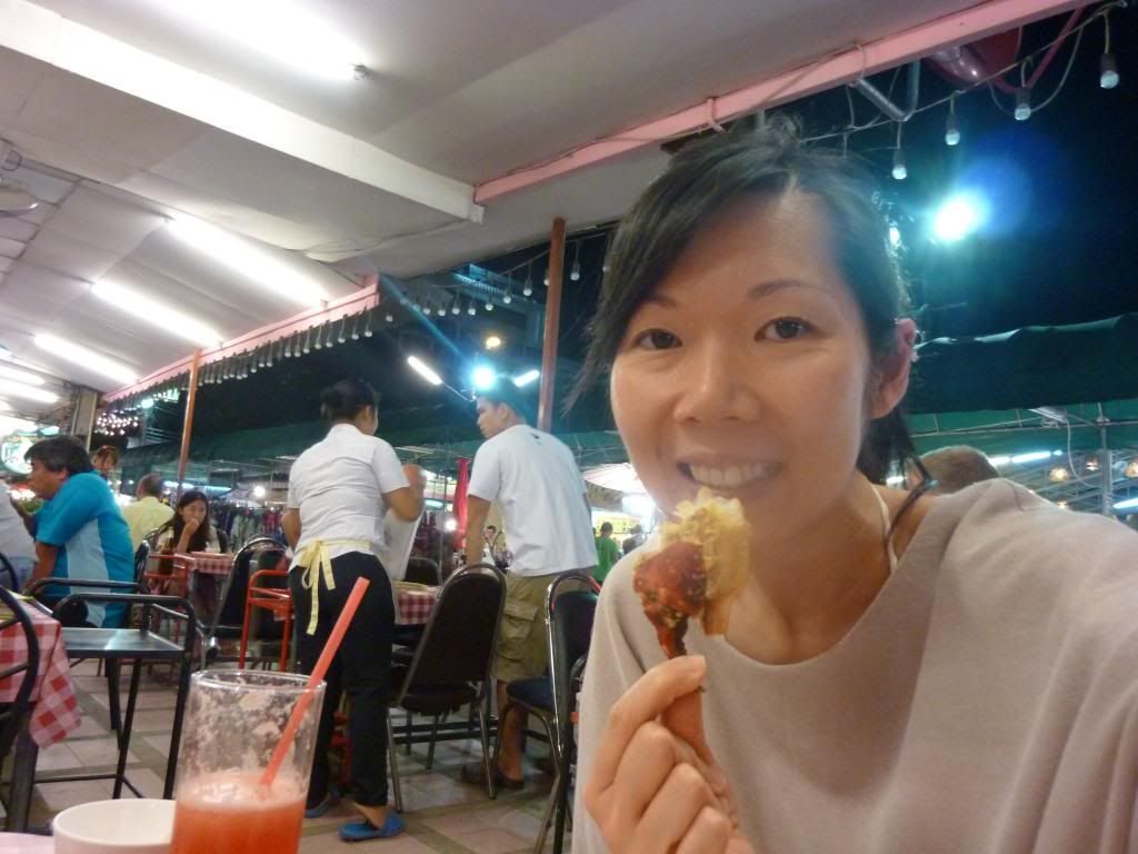 晚上我們坐上酒店免費的tuk tuk往night bazzar。先到大華的流動兌換店換點泰幣,港元只對3.83.....真是有點難過,每次到泰國來的兌換率都每況愈下。