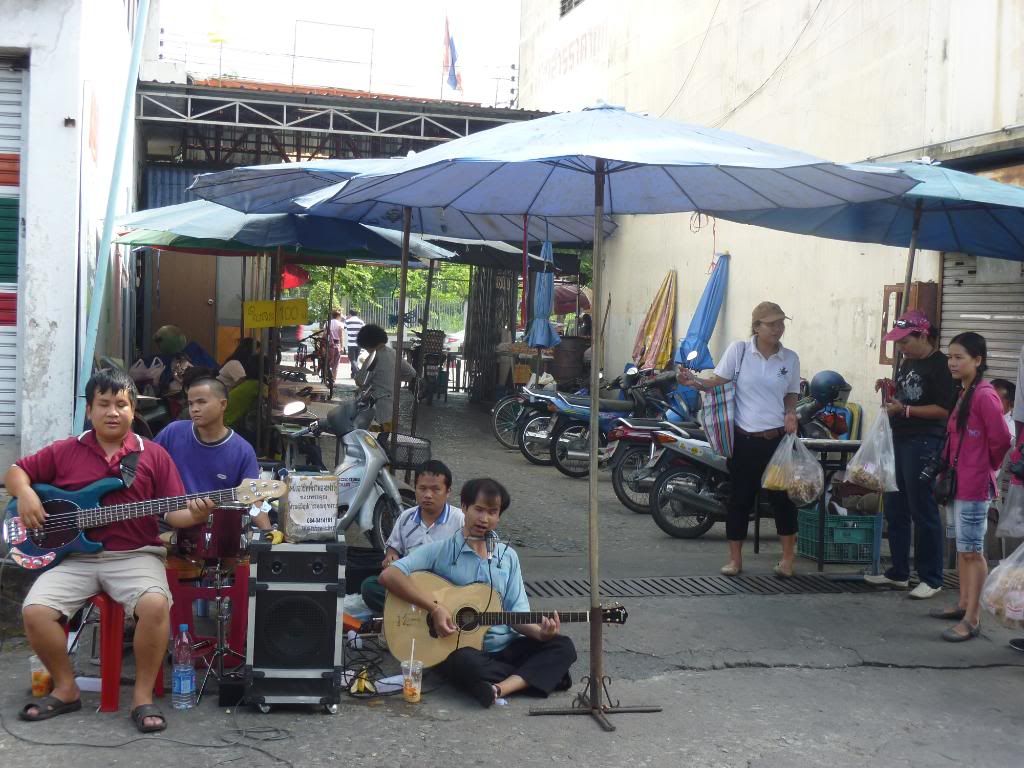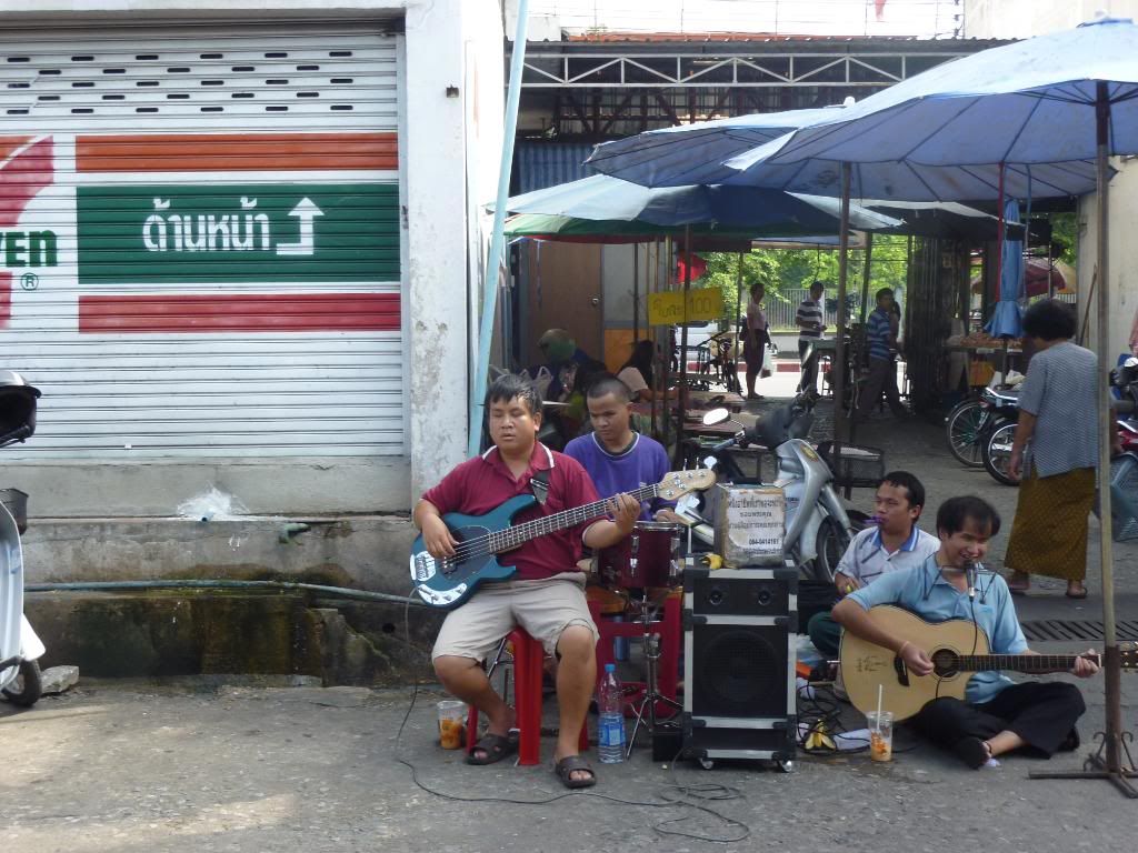 這時候,聽到有點熟悉而美妙的歌聲...原來是去年在Sunday Market也有在賣唱的視障男生們!噢....我也忍不住走出去細心聆聽。真的,我只懂很皮毛的泰文,但他們的聲音卻可以打動任何人!況且,身邊一羣本地的聽眾,他們的歡呼、跟樂團的互動...我知道,他們絕對是清邁的天賴之音。