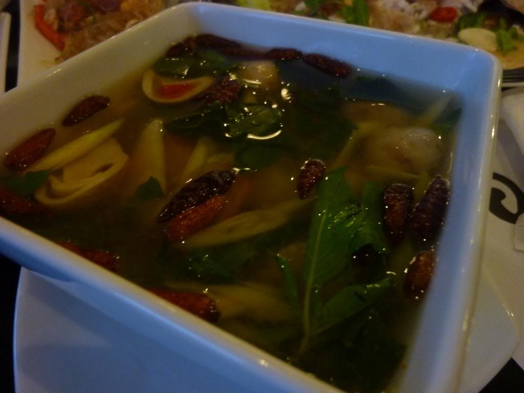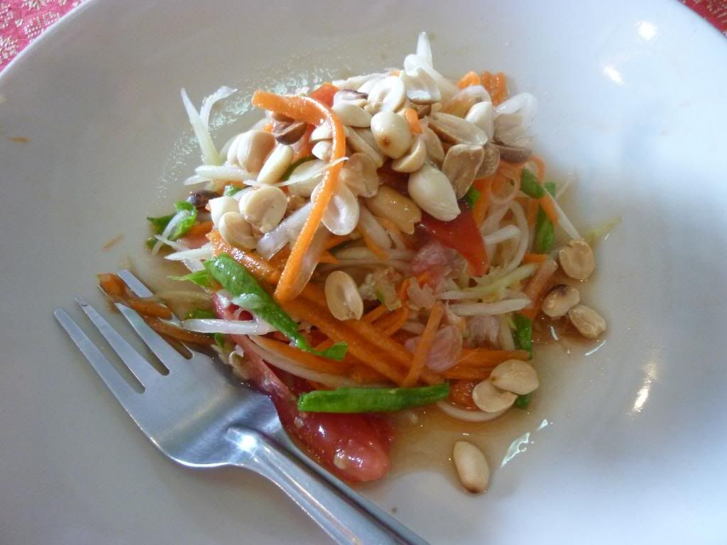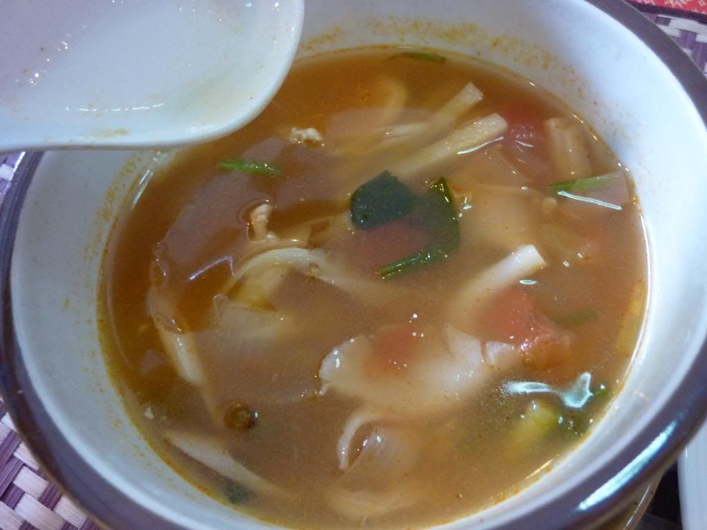 Tom Yum,嘩!看看廚師下了多少辣椒?自以為今天已經在cooking school被訓練吃辣的我,也不禁被嗆到了。還好是一碗,要不其他三位都不好此物,實在太浪費了。