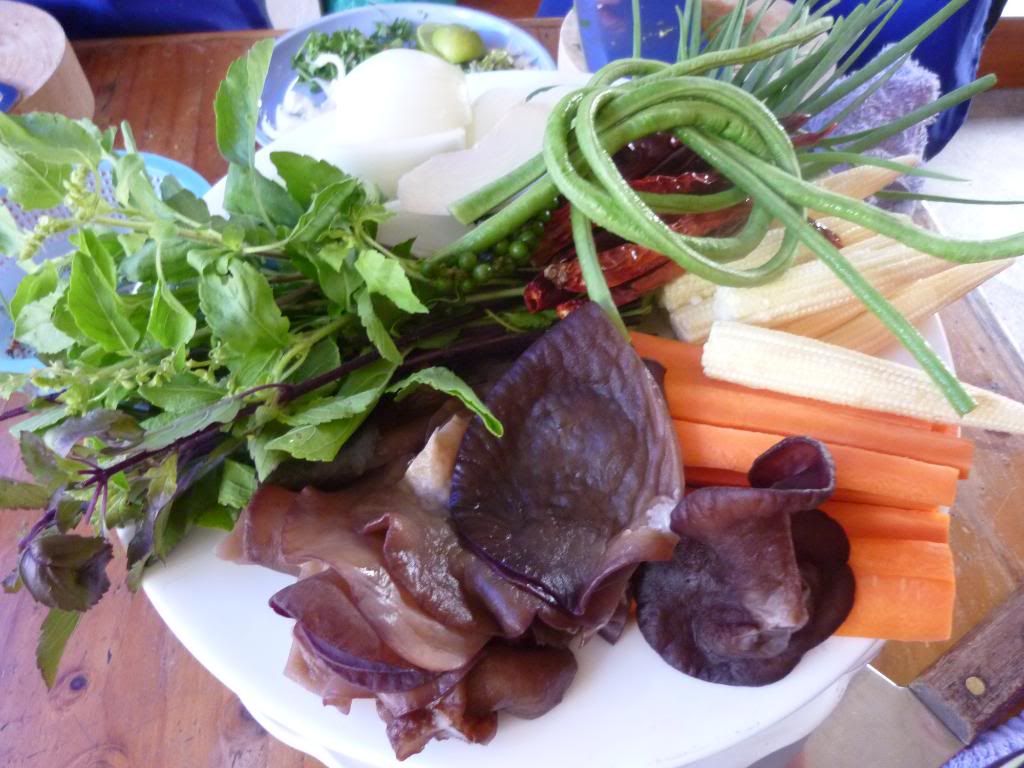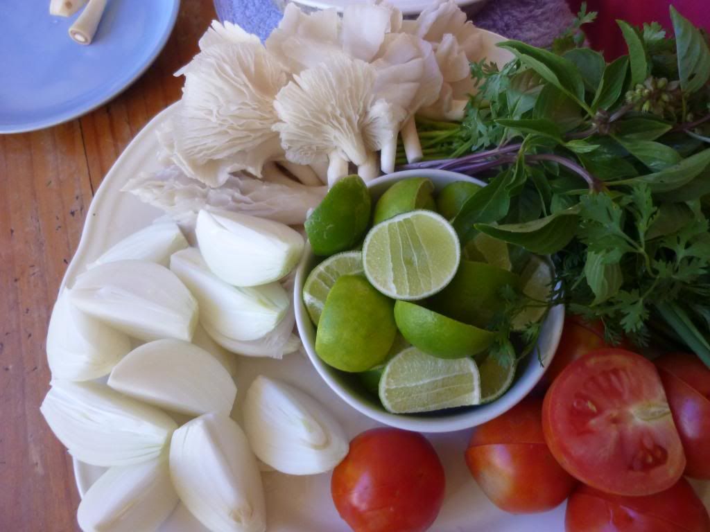 我又選了Som Tom,一見到新鮮的、大大的像朵雲的Oyster Mushroom和木耳就樂了!老師叫我們平均可放3夥指天椒,來自紐西蘭的Jacob卻說不夠,他大概下了15夥吧!Nancy說曾經有個美國男士下了45夥,卻面不改色,這是她目前的紀錄。我真的較愛這沒加椰奶的版本,能夠喝出各樣材料的原始味道,酸、辣在互相融合著。