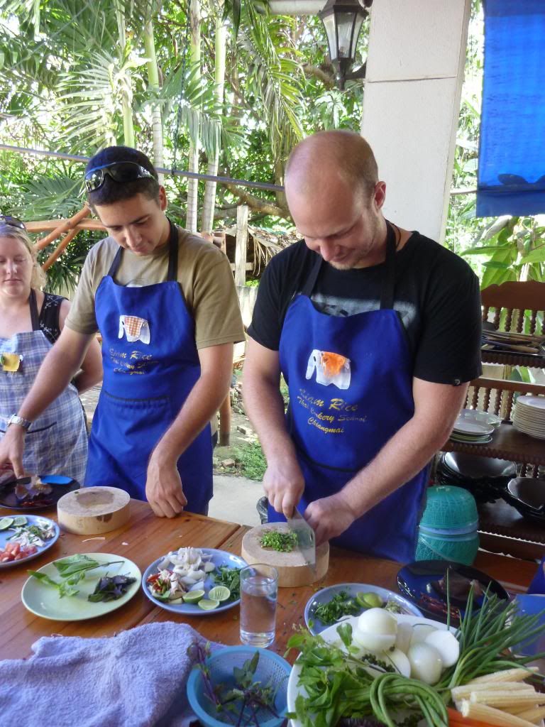 千挑萬選,最後還是選了在trip advisor上得到最多正面評價和讚賞的siam rice cooking school www.siamricethaicookery.com 。很巧,去年在a lot of thai學的時候是Yui主教,她先生做後勤。今年siam rice也是Nancy為導師,老公Pot在背後支持她。