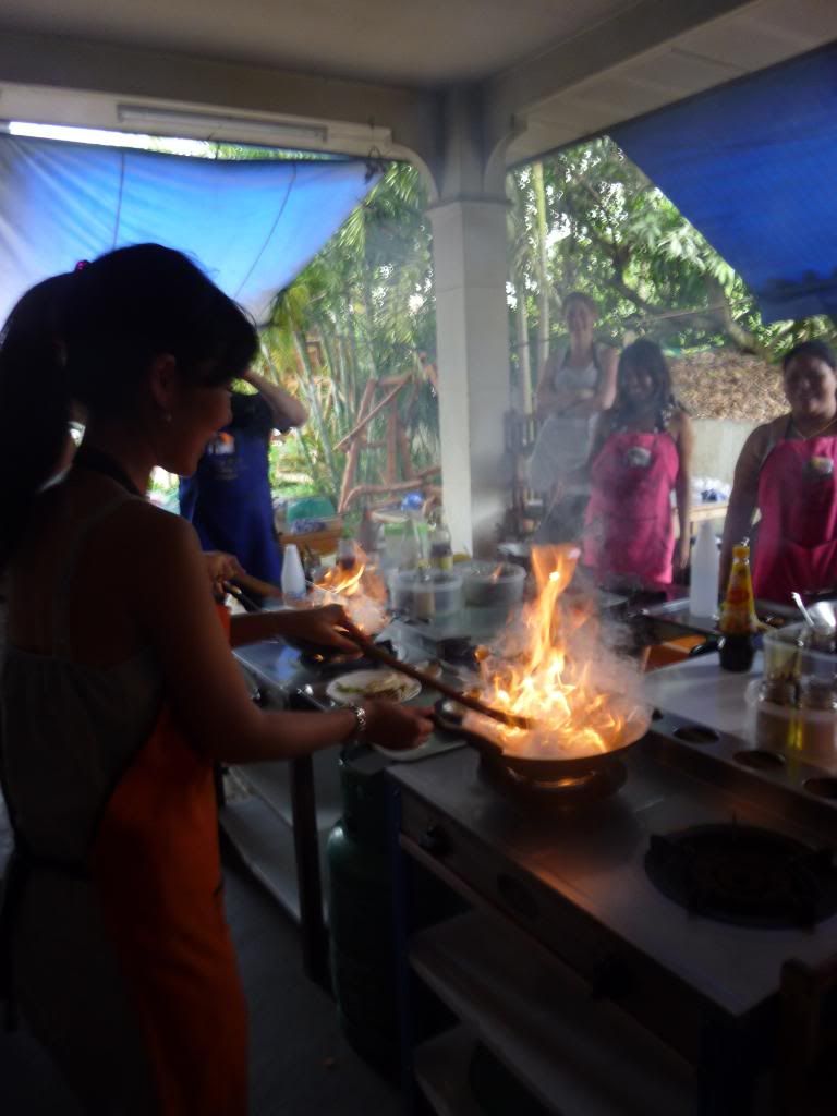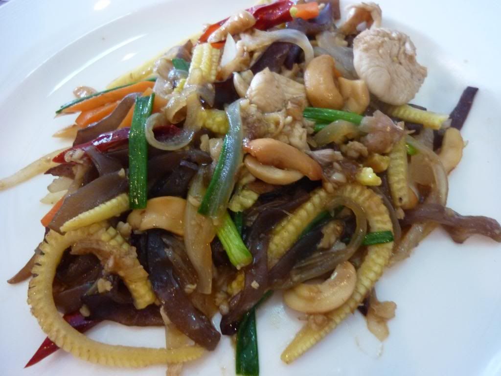 小炒我點了腰果炒鷄肉。這一節大概是今天的gimmick所在,老師要我們兩人一組,輪流拍攝對方的情況。我們要將鍋燒到紅得不能的時候,再取一點火來爆炒。鍋氣是十足了,但我的頭髮也差點兒被燒到,好險呢!