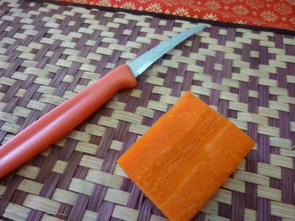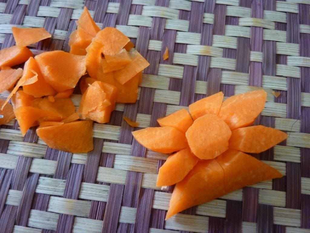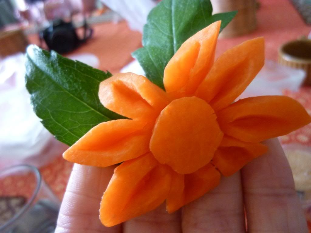 下午課開始前,Nancy教我們用甘筍雕刻小花。自以為有美術根底的我卻被難倒了。(中學時代....N年前的事啦)雕是雕到,但好像有點歪了。
