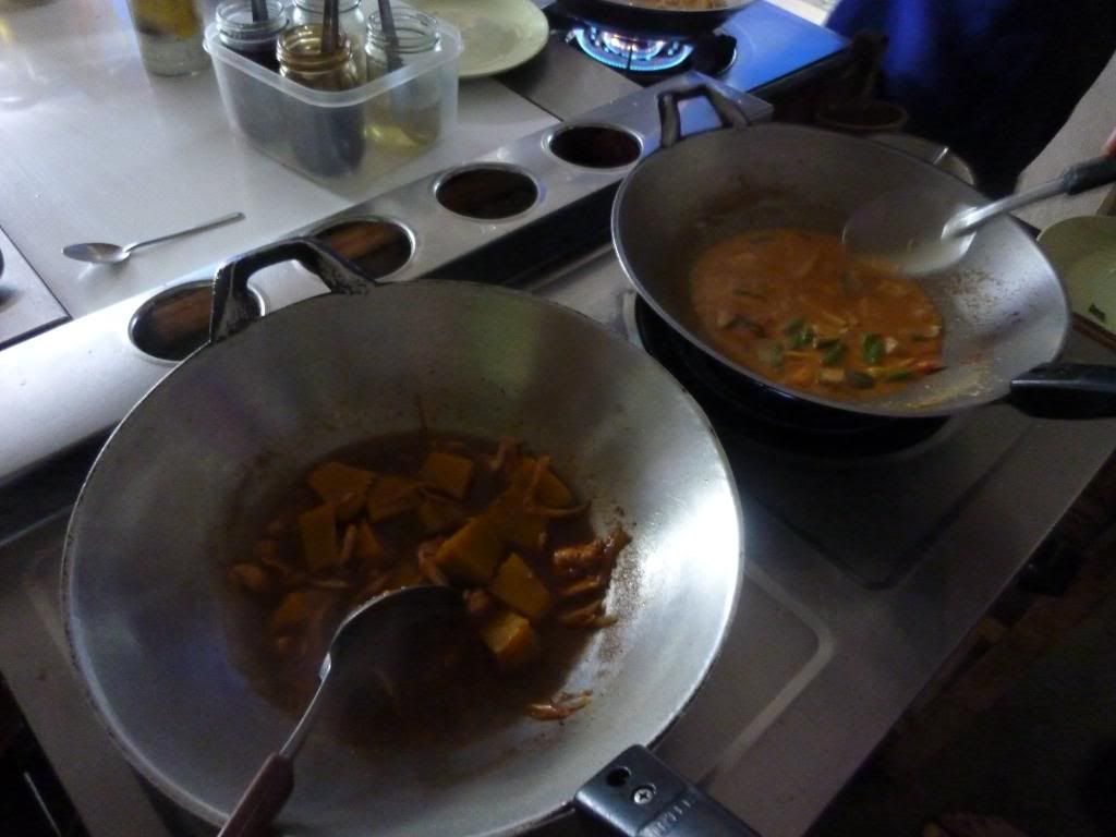 各人都開火把咖喱煮開了。唯獨Jacob選的Jungle Red Curry加了很多的辣椒,使我們都被嗆到了。不消一會,各式各樣的咖喱也大功告成。