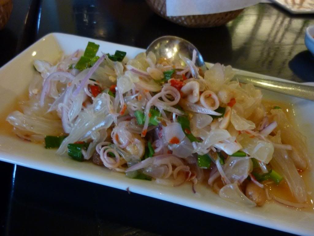 前菜我點了柚子沙律,踏入夏季的金柚多汁又甜,配上炸蒜、乾蔥,又咸又甜的,就是我最喜歡的泰式沙律啦。