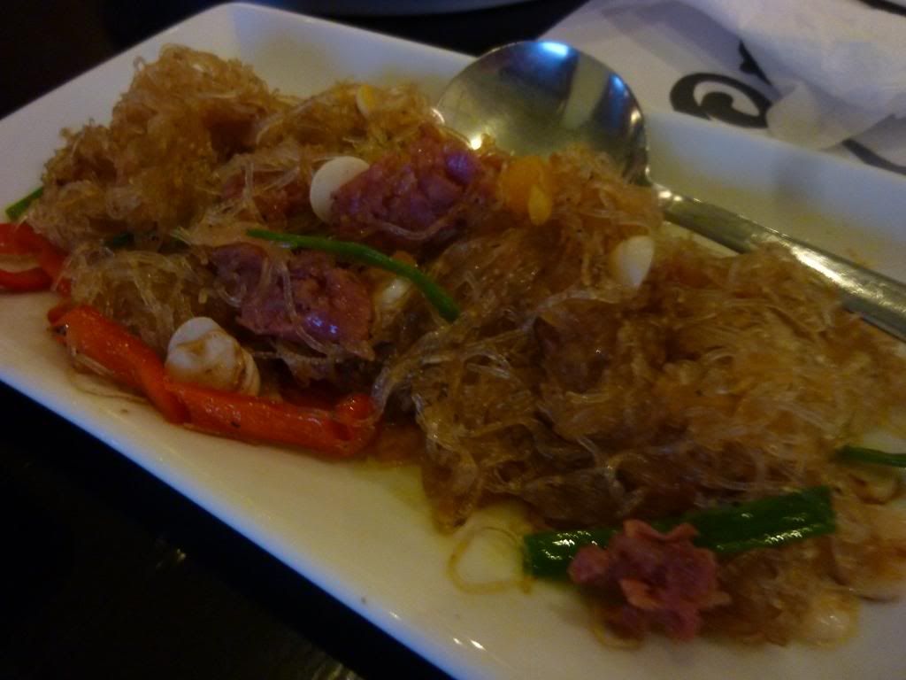 還是這個讓我充滿懷疑的咸蛋炒粉絲最讓人驚喜!因為不想點些太多膽固醇高的食物,但又突然懷念起芭堤雅海邊的夢阿來餐廳的咸蛋炒芥蘭...這個呢,炒得香口而乾身,結果整夜的菜我最喜歡它了。