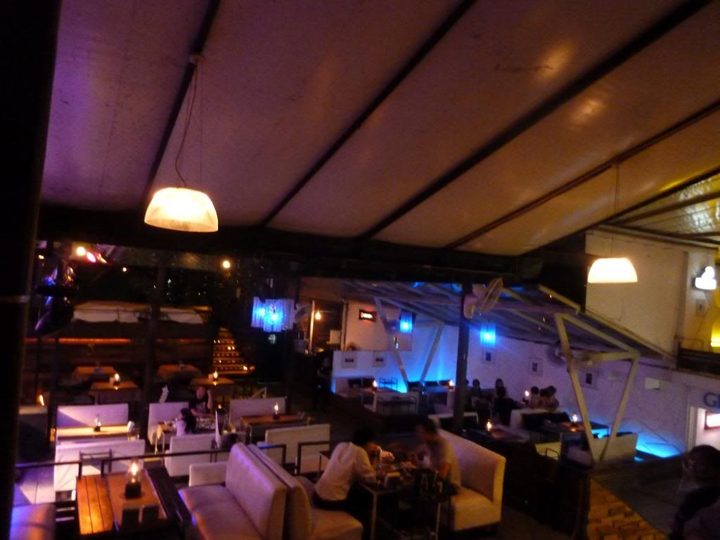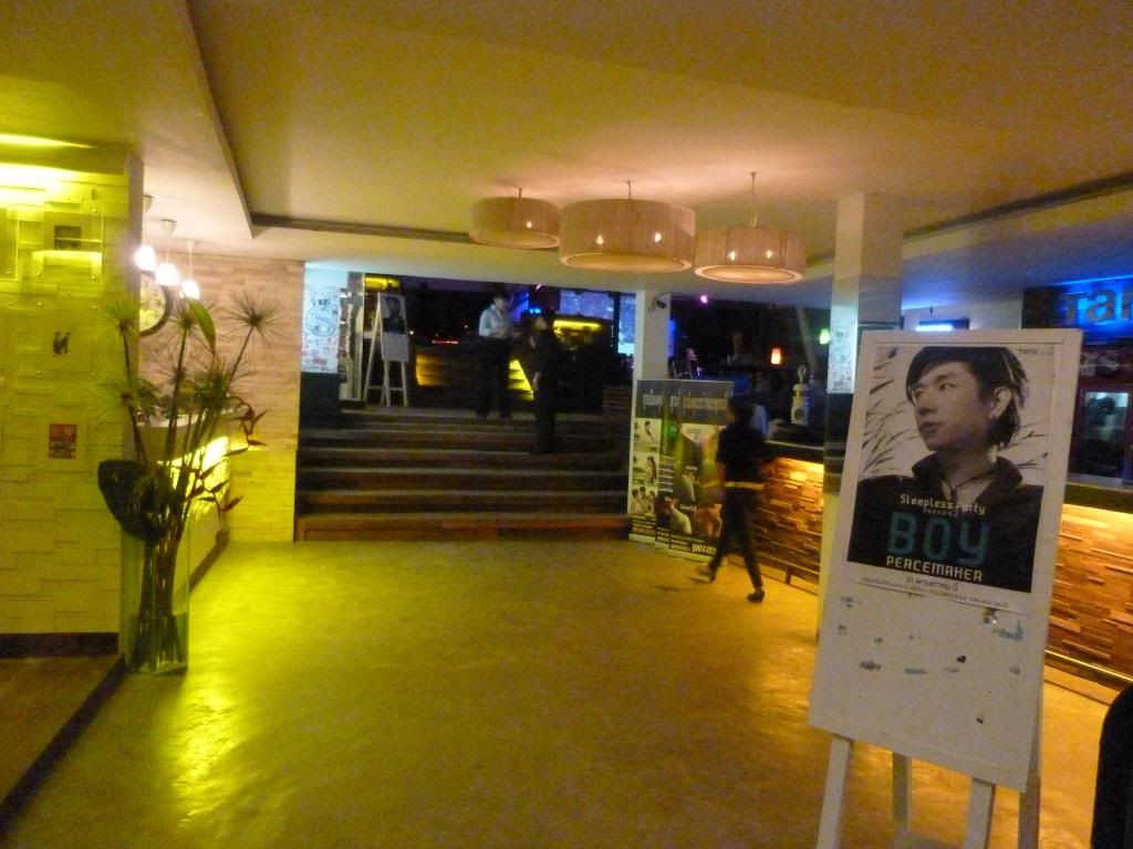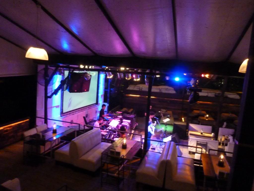 已兩天都經過了這地方好幾次,實在有點好奇裡面是怎樣的。嘩!好大的地方,還有個正式的舞台供live musician表演用。這裡原來並非只是酒吧,還是本地泰式加壽司吧餐廳呢