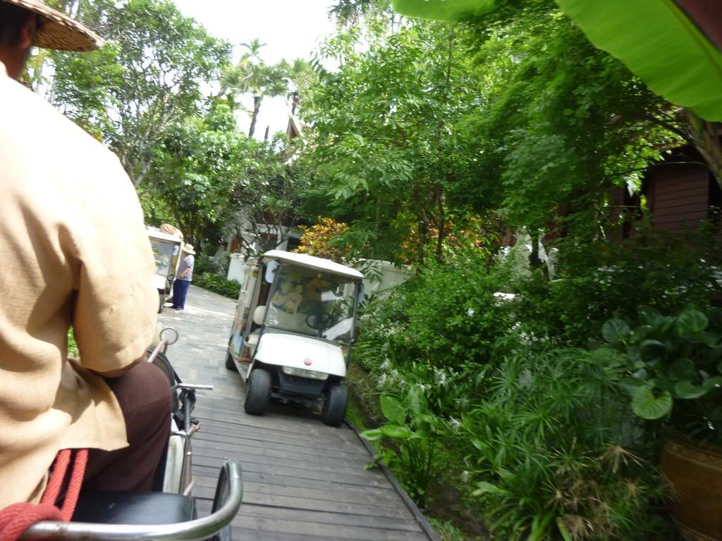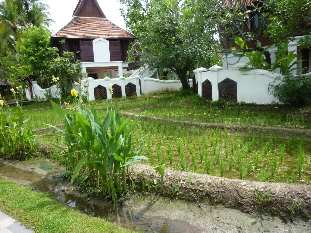 這裡到處到充滿綠意,偌大的別墅前每每都被大樹包圍、門前也種植了各式的植物和稻米,聽說這裡的餐廳用的米,都是由飯店聘用的農夫所種的。而且,清邁文華最貴、最高級的villa的觀景也並非綠油油的山巒,而是農田。也許,因為願意花高昂酒店費用的都市人,來到清邁也大抵想體驗一下原野的生活吧...