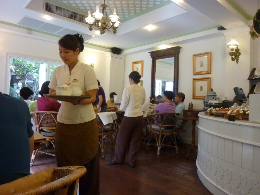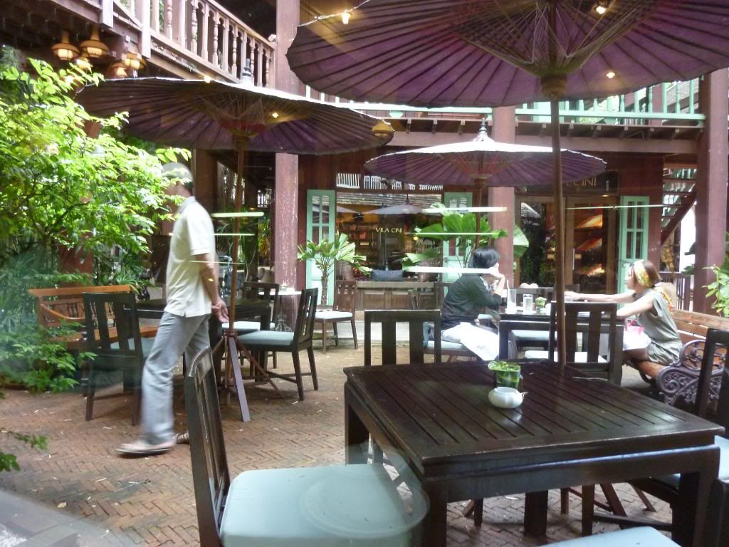 又再回去Riverside,誰知比剛才更多客人了,年輕人都湧在店內外欣賞thai pop...好熱鬧噢! 最後,待應帶我們到後方的新店,喔,還不錯呢?早知道就來這邊啦....漂亮的中古式大宅,前園和後園都有很大的露天用餐區,大宅中有live band註場彈奏輕快的thai pop。