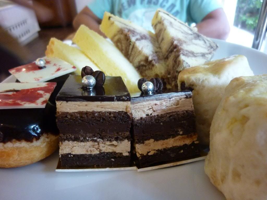 低層的甜品有牛油及雲石蛋糕、coffee & chocolate truffle及chocolate puff。我根本就太高估自己了,吃完鬆餅後,其實已有八成飽了。接下來的甜點我只吃過一小口,甚至沒碰過...那件咖啡味的truffle cake是不錯啦。也許因為自己做餐飲業,口味也有點要求,不好吃的寧可放棄也不碰...