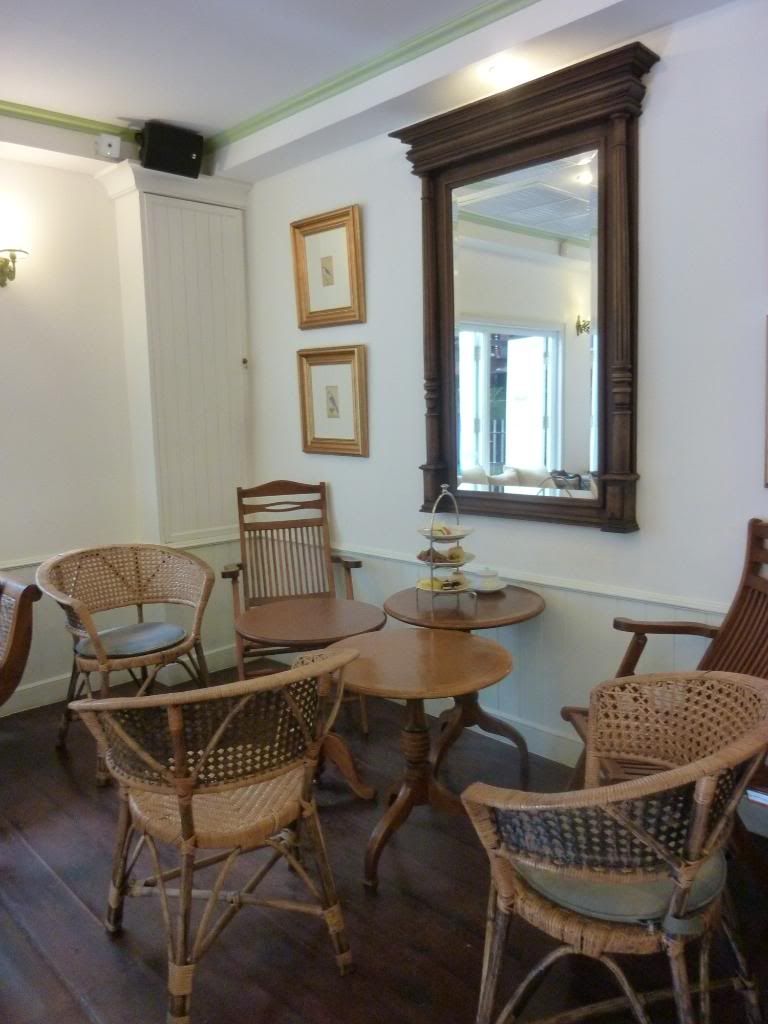 看看手錶,剛好是三時多,是阿Vi要扮作高貴的太太享用英式下午茶的時候了。也許是有點熱的關係,而且户外的地方也沒甚看頭,我們還是選了室內靠窗的位置,既可以感到柔和的下午的陽光、又可以享受舒適的空調,這根本就是太太的下午茶應有的場景吧。