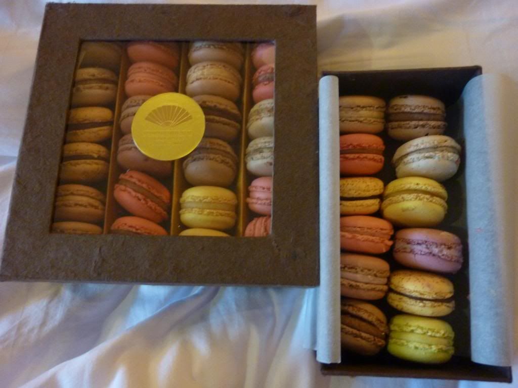 先回酒店休息一下,忍不住打開剛買的macaroon欣賞一下,嘩...好美的質感和顏色。我自己就興趣不太,覺得它們有點甜,配著black coffee應該不錯吧! 一盒送給母親大人,一盒送給公司的同事,10天的假期,要他們分擔了我的工作,當然要送上貢品。