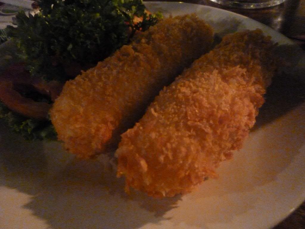 老公點了2公升的Chang Beer,小弟得知只有他自己喝也嚇了一跳。我就點了最愛的Mojito。再來個potato croquettes來下酒。