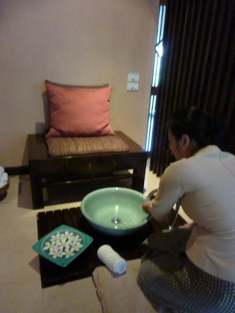 之後她再帶我到上一層的Spa Room,哦...也許是去年在芭堤雅的Centara Grand Mirage內的Spa太豪華吧,簡單而帶點陳舊的裝潢有點讓我失望了。而且我的水療之旅,是交給一位媽媽級的技師的,還好我會簡單一些泰文,要不然我想就難以和這位不會說英語的媽媽溝通了。