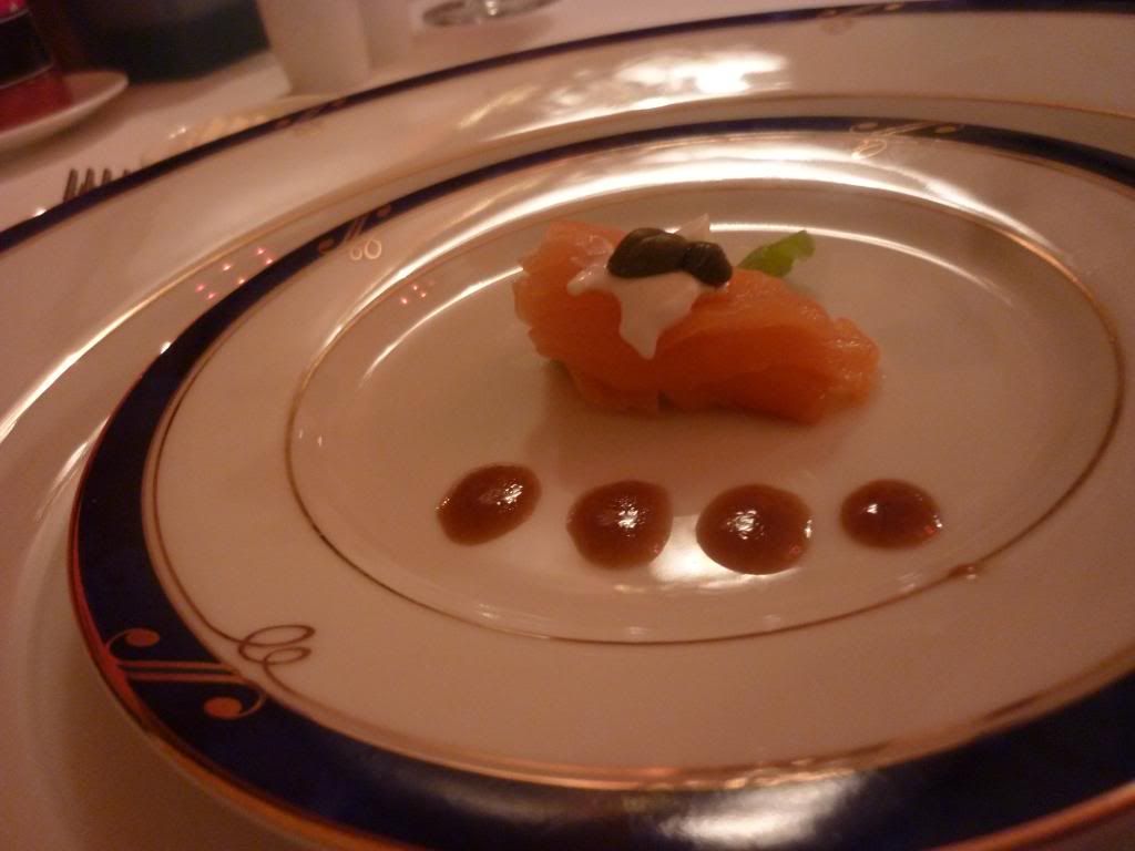 Amuse Bouche~Smoked Salmon Roulade,為了禮儀我才强忍我最不喜歡的煙三文魚吃下,對不起啦!老公說其實味道很好又不會太咸的...