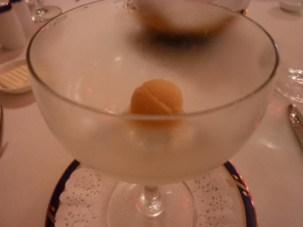 Orange Sorbert,比高爾夫球小一半的它,坐在冰鎮的玻璃碗中,清新而不太甜。
