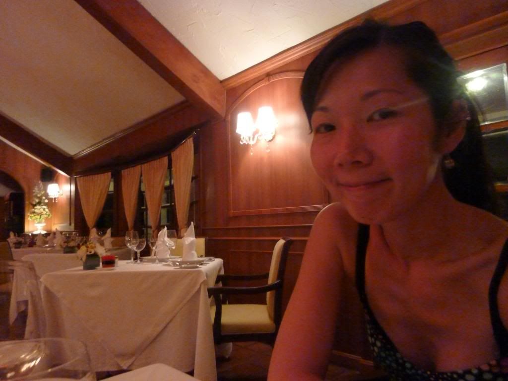 主菜後先要休息一下,老公當然要往户外"呼吸",我也想往室外走走,卻在遠處見到樹上有一閃一閃的綠光,嘩!原來是螢火蟲呢!可惜我的相機光圈不夠大而拍不到...總叫做晚飯後的bonus!