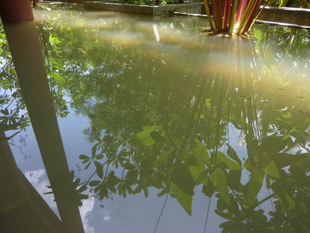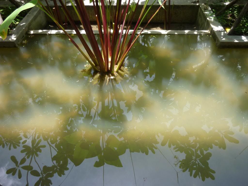 當老公還在和周公談天, 我已把行李都整理好。走出陽台想探望一下這個星期一直伴着我們的小魚兒, 可惜因為連日的大雨, 把魚池邊的泥土都沖進去了, 把它的水都變了泥黃色, 好不容易才見到像指甲般大的小魚快樂地在暢泳呢!