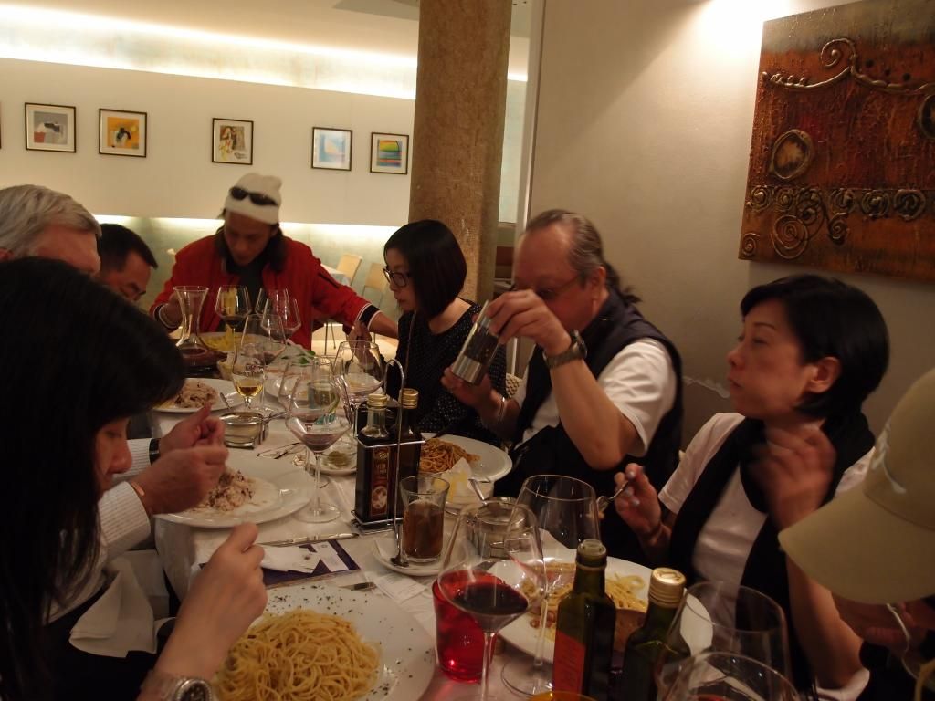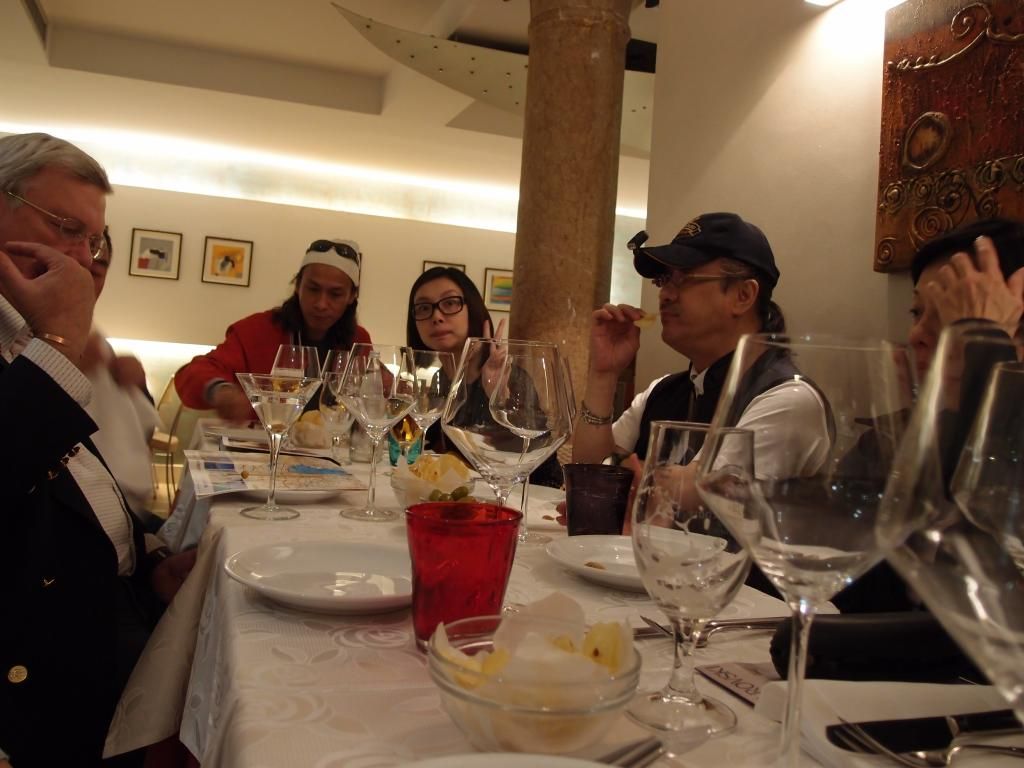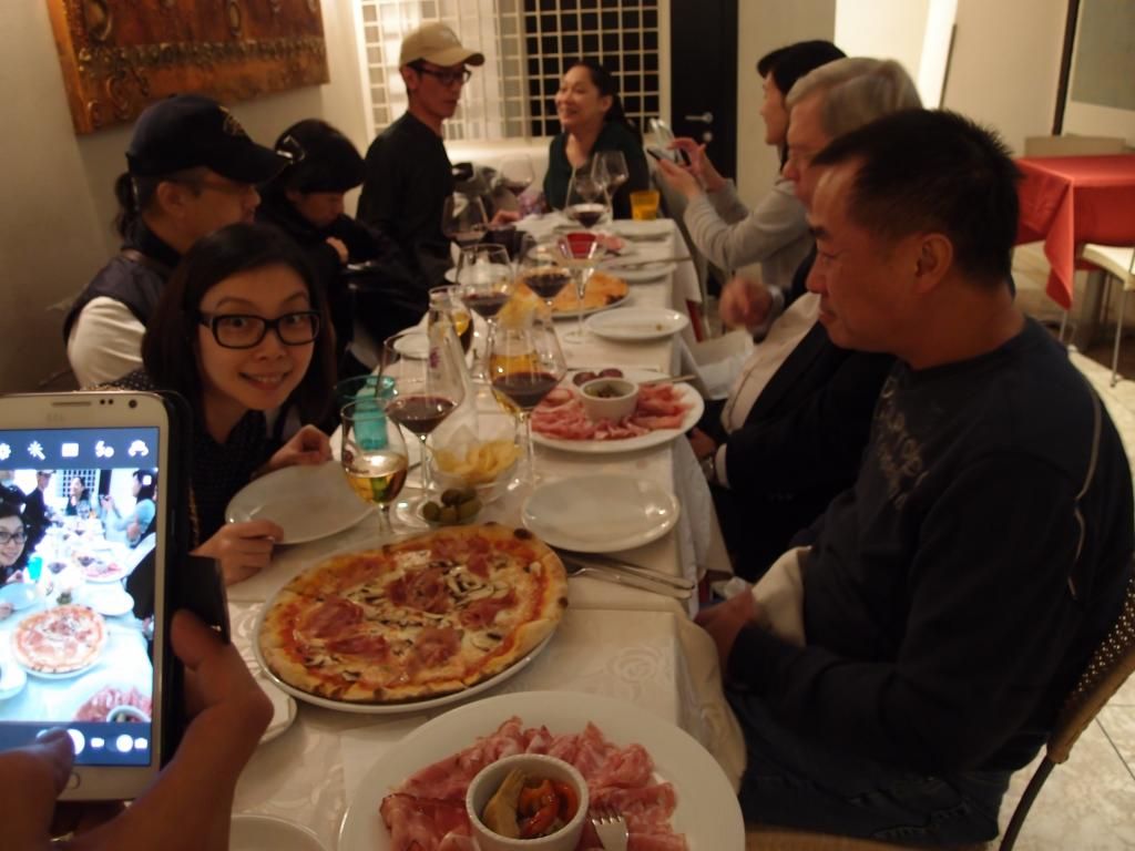 最後我們又回到Arena de Verona對面的一所餐廳用餐了。侍者是位爽朗的美少女, 明快的工作效率令我以為自己還在香港。來到意大利的第一次晚餐當然要喝這裡的葡萄酒, 一白三紅。也許太興奮了,也就忘了喝的是什麼葡萄酒,只記得有兩瓶是Amaroni...