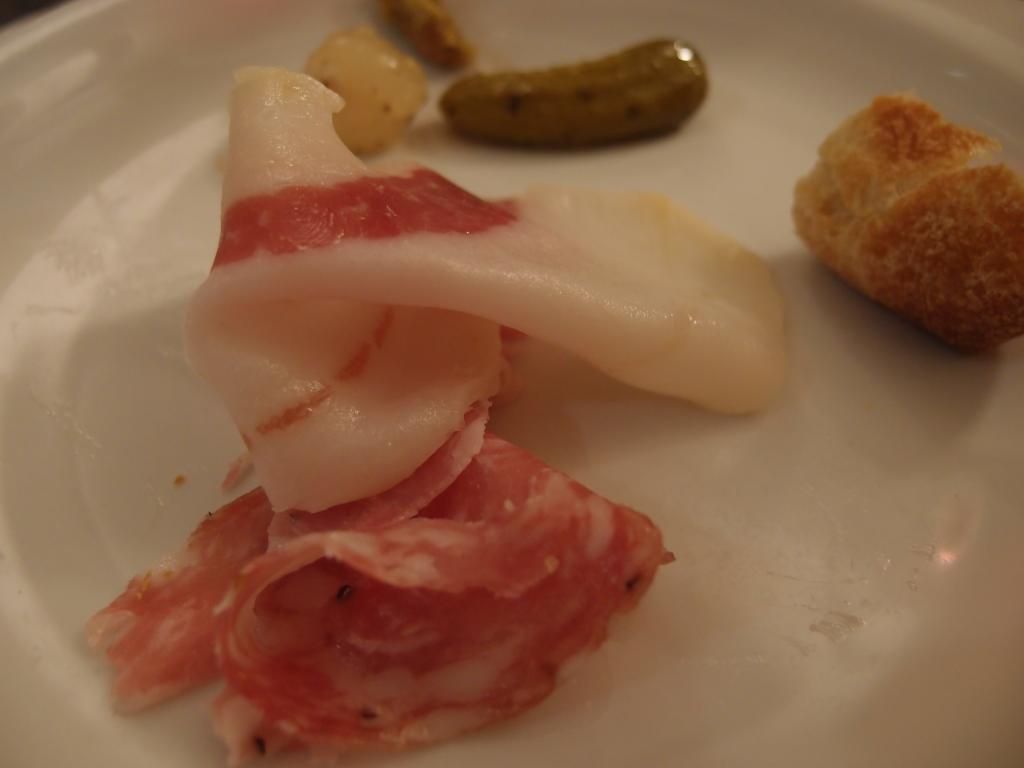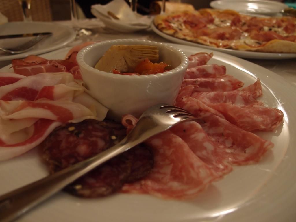 點了好幾個Antipasti, 有橄欖、亞枝竹、甜椒、prosciutto、超級五花pancetta和salami, 我這個排骨人吃這入口即溶的pancetta也有點不自在, 實在太肥了啦!