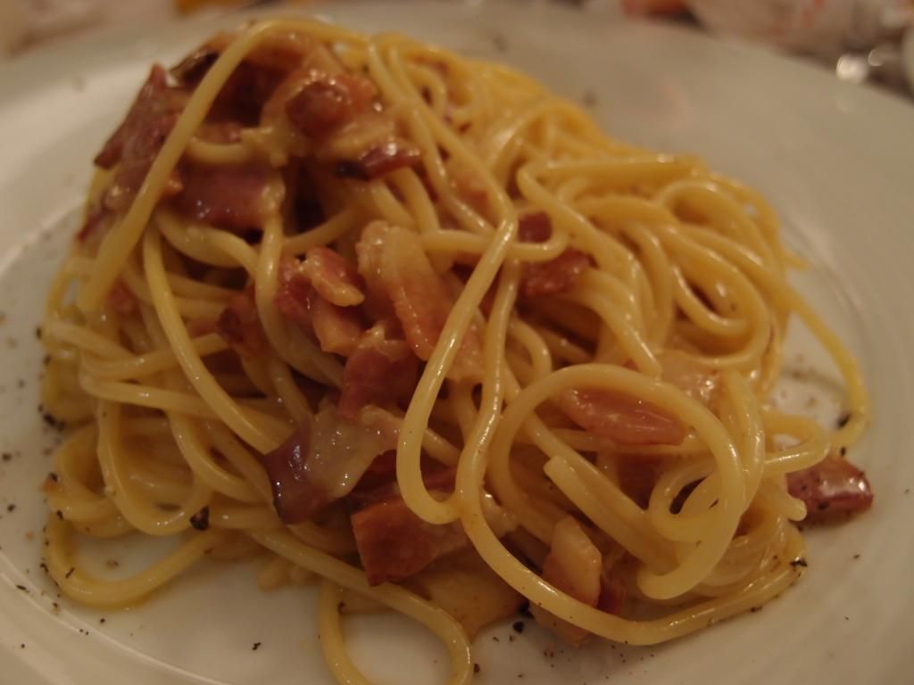 每人各自點一份意大利麵, Vi點了Carbonara。哦....天啊! 濃濃的蛋黃和parmensen cheese的香氣卻又一點都不creamy, 而且很清爽的, 加上麵條帶麥香而且彈牙, 非常可口。完全將我這麼多年對Spaghetti Carbonara的印象打破了。