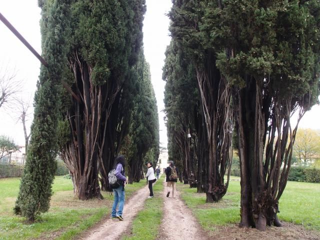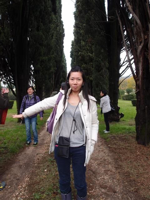 走過這段松樹路後, 有個小小的教堂, 因為現正維修中而不方便進內參觀。Andrea說這小教堂可以進行小型婚禮儀式, 可是, 我都已沒有這需要了。