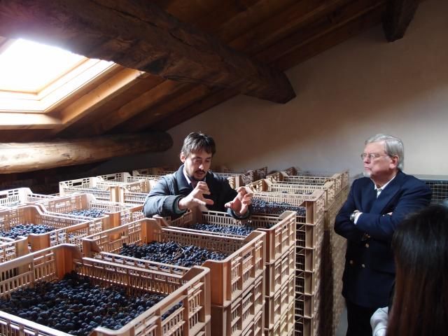 Amarone它代表着心血一點都沒說錯。人手採摘的帶莖的葡萄, 就鮮活的被放在自然風乾室最少120天, 目的是讓它的單寧更厚重、甜度提升。別的新世界酒廠大可以用技術、科技去讓葡萄催化, 但這的Pieropan卻用時間去令它們成熟。當葡萄都縮小了至40%, 約明年的初春二月時, 就可以進行為期30-50天的發酵, 之後就可放在我們參觀的地下酒窖再陳年。