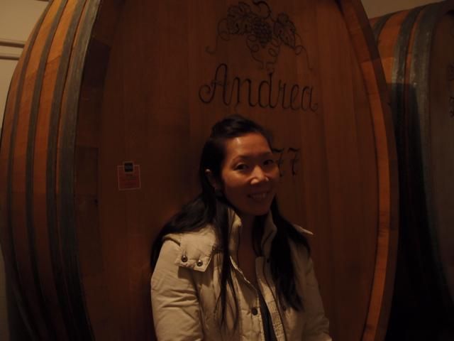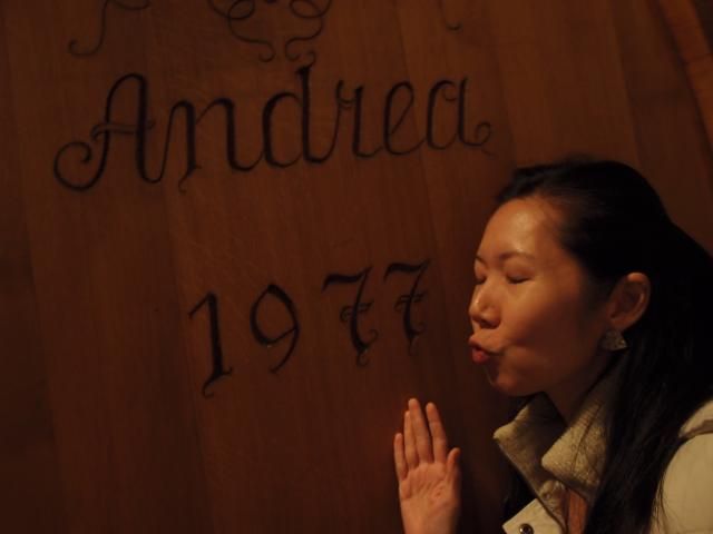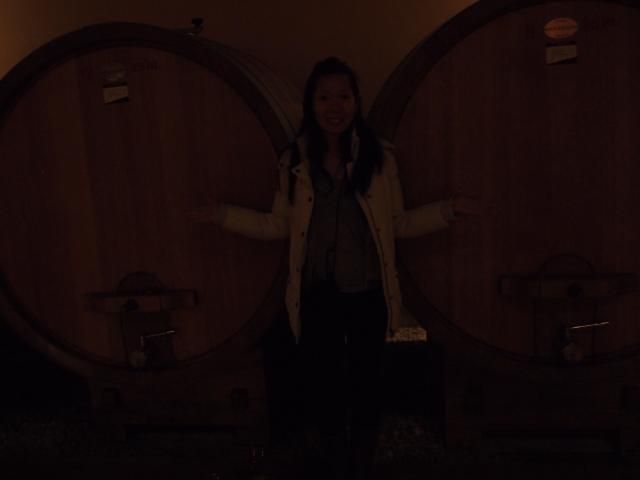 很壯觀的場面, 巨型的法國橡木筒前, Vi立即變成小矮人了...