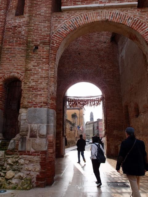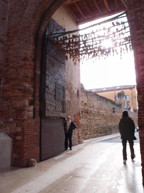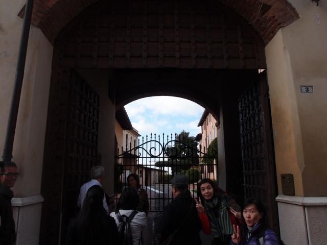 Pieropan的酒廠位於城中一個堡壘之內。好特別的城門, 門頂就掛着串串風乾的金黃色的葡萄呢!