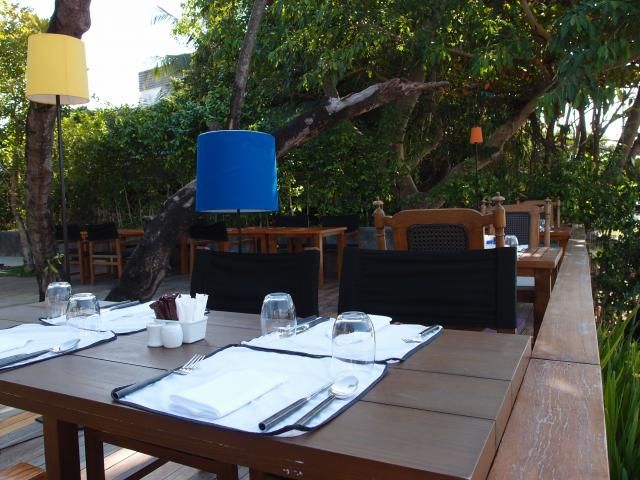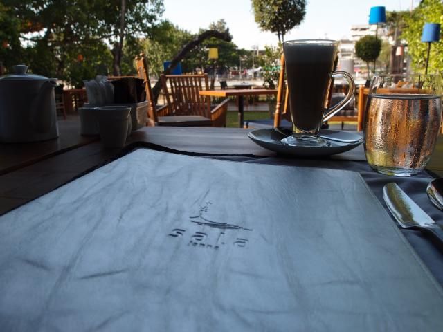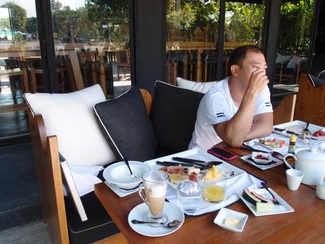 餐廳的户外只有兩個沙拉座有帳篷的位置, 其他都是在陽光直射下的座位。還未醒好的人還是不要曝晒在太陽下, 免得脾氣又來了...