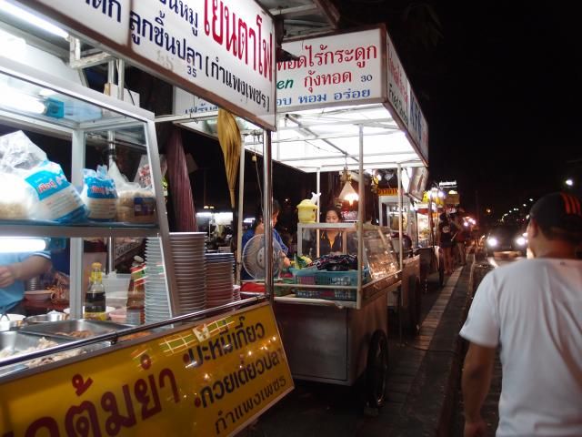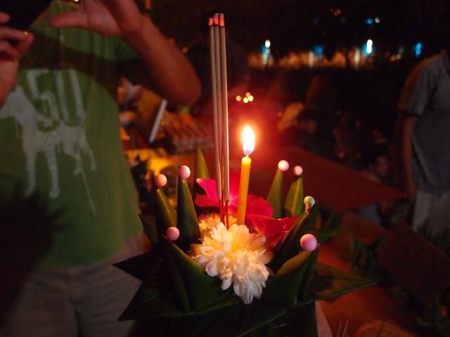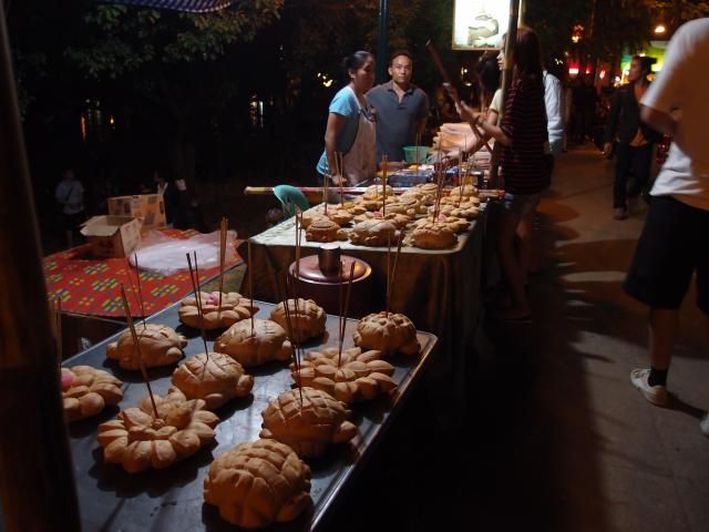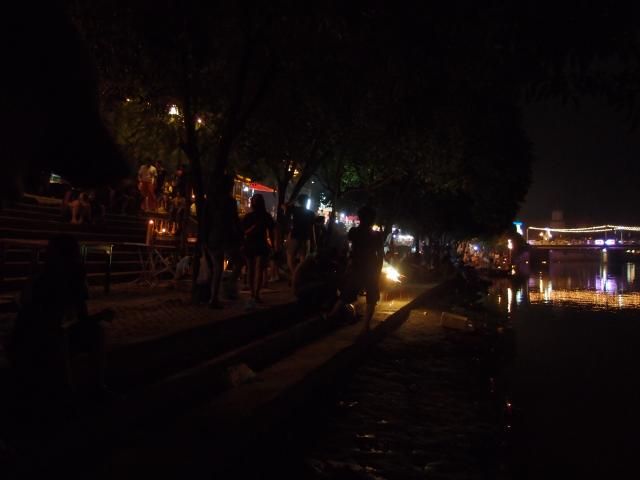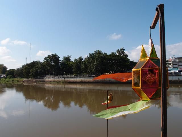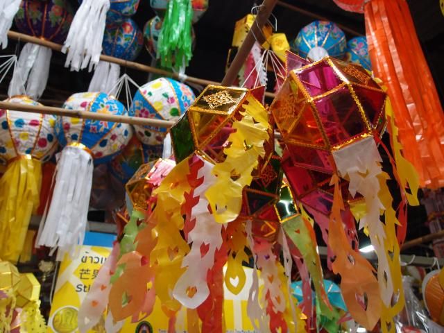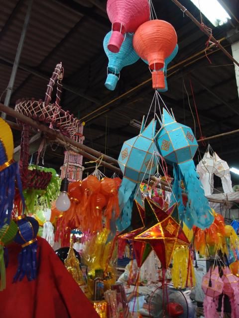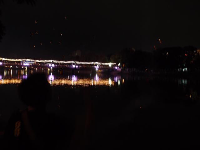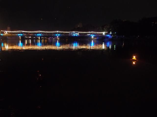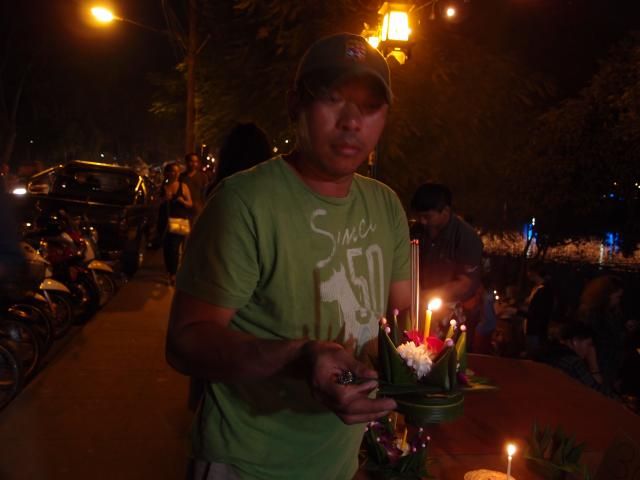 靠河的Charonet Road也很熱鬧, 沿路都有賣不同的食物、天燈、水燈、煙火炮仗的小攤子。天燈不斷的往上空飄去, 氣氛比我們的中秋節有過之而無不及。