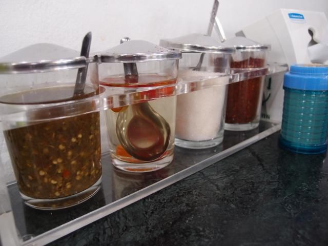 喜歡泰國的食店, 就算消費便宜的都講究衛生整潔, 調味料"四寶"瓶永遠乾爽不油膩, 這裡的筷子還有透明獨立包裝呢!