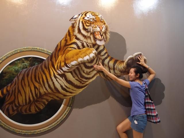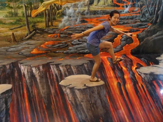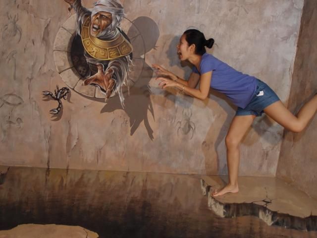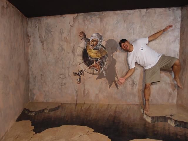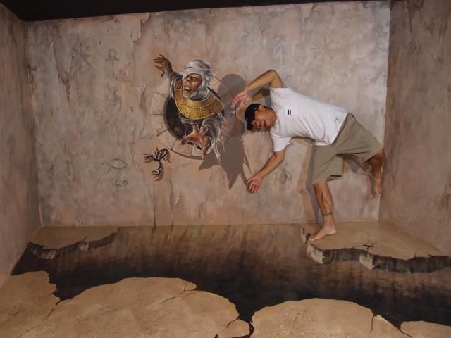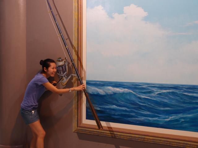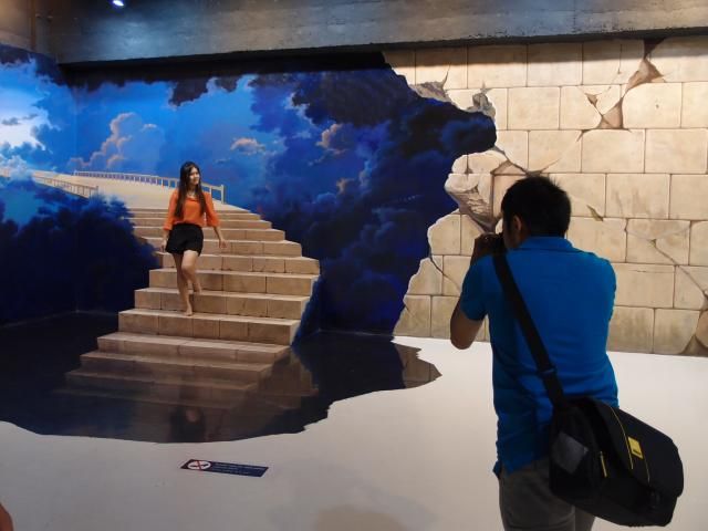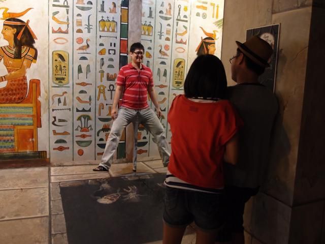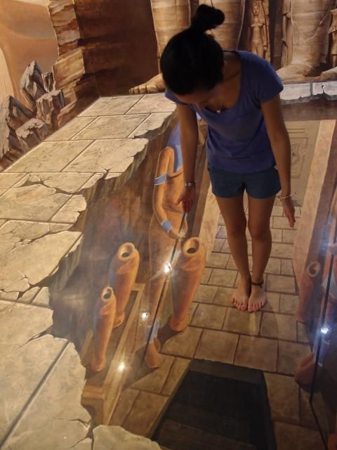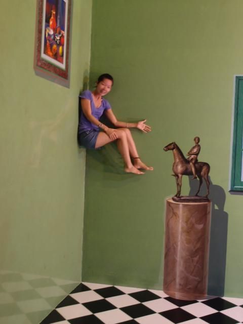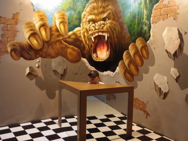 樓高三層, 設有不同的主題, 入口處先有簡單的三維立體畫的解說。亦有些讓我回憶起小學時很流行的錯覺藝術畫: 圖中你看到老公公和婆婆, 還是看到兩個墨西哥小鬍子呢?