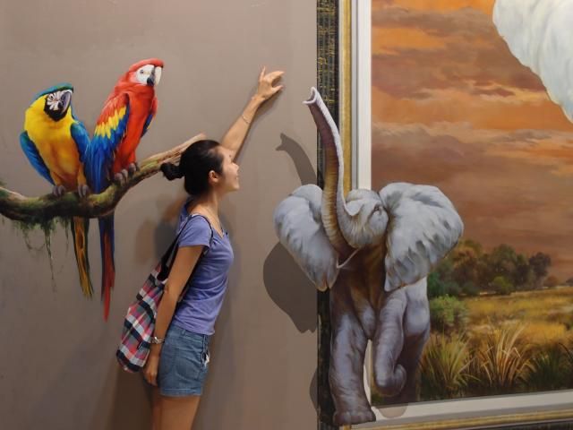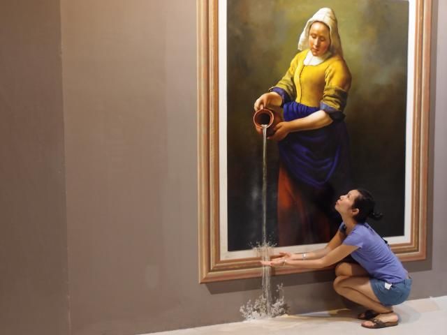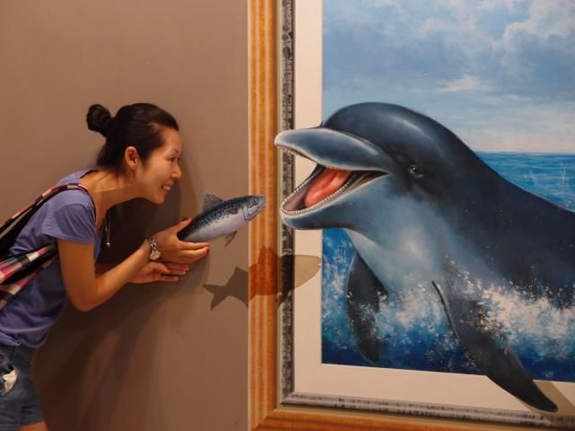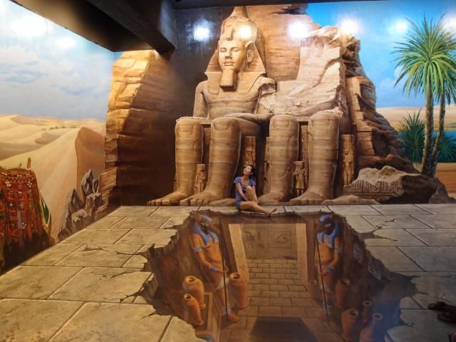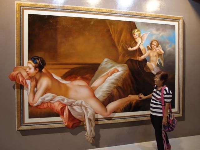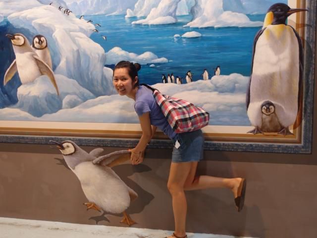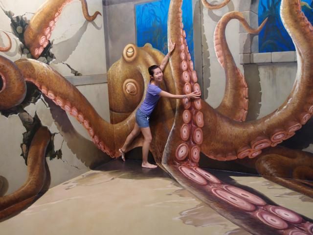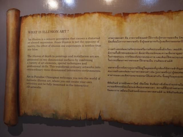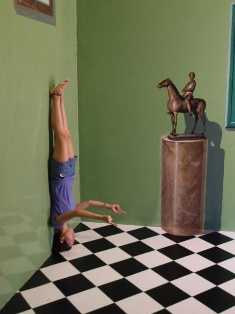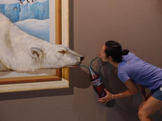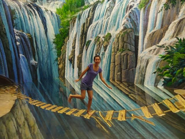 樓高三層, 設有不同的主題, 入口處先有簡單的三維立體畫的解說。亦有些讓我回憶起小學時很流行的錯覺藝術畫: 圖中你看到老公公和婆婆, 還是看到兩個墨西哥小鬍子呢?