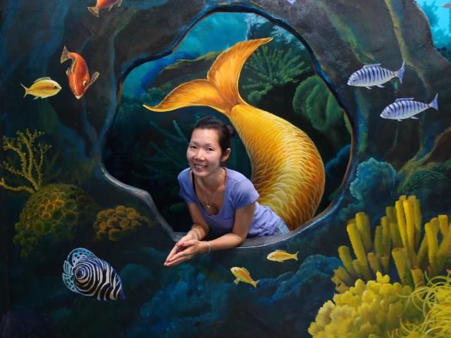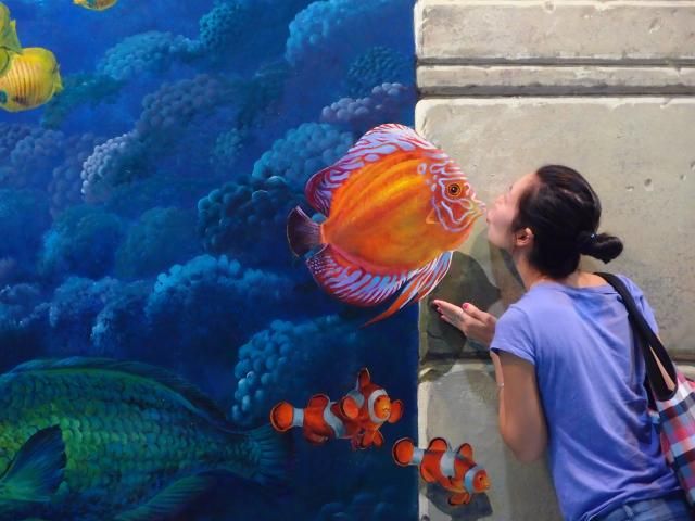 第一個主題畫廊是海洋世界, 從少就喜歡畫畫的vi, 心情超級興奮的。雖然它們都只是牆上的立體壁畫, 但無異於真實一樣, 而且任由我怎樣觸碰也不會有問題呢!