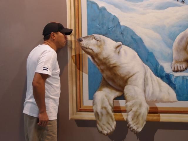 全館我認為以這雕塑畫最最最有立體效果, 就是親身看也以為真的是尊雕塑呢! 其實除了厲害的畫功, 還得有燈光的配合。