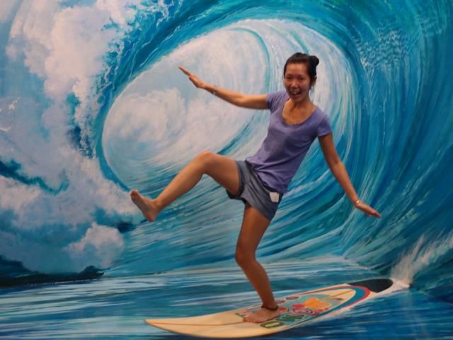 我更喜歡這個很有趣的錯覺空間, 有了它就可以輕易的做到我根本不能做到的凌空動作, 甚或倒豎蔥了呢!