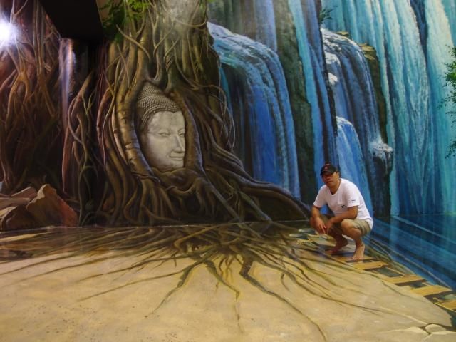 餐後就往有點期待的3D立體藝術館Art In Paradise去。才開幕不過半年, 入場費為$300bhat。注意場內不準飲食, 我們也乖乖的把自備的瓶裝水寄放在儲物間。