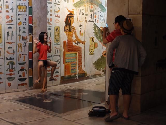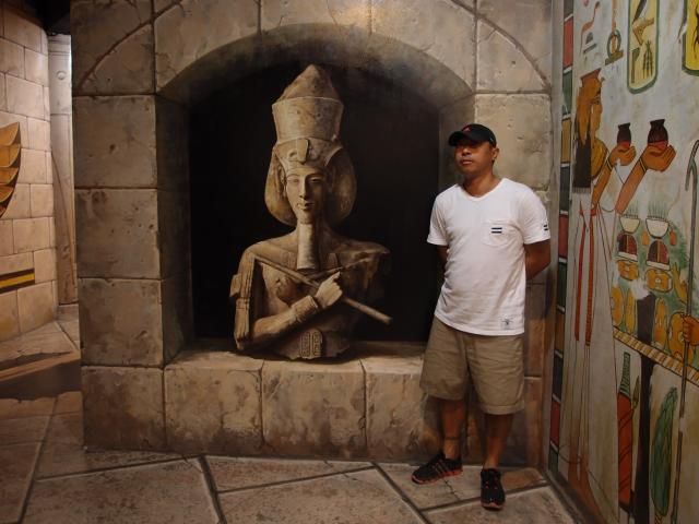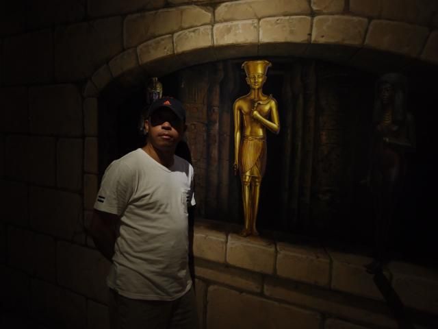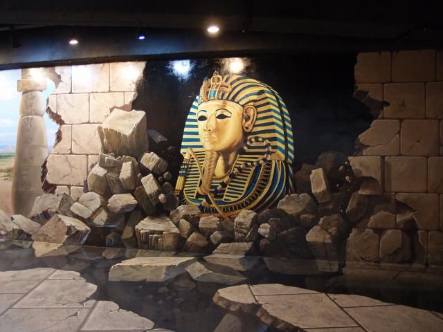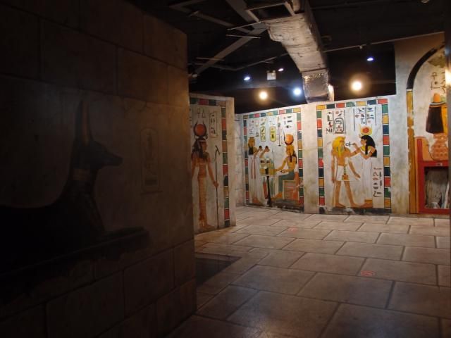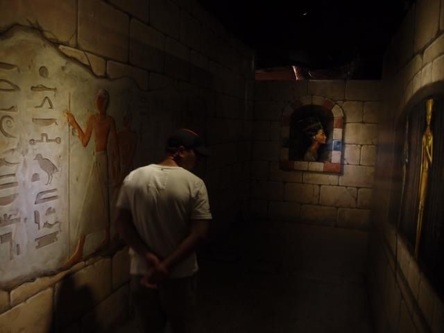 古埃及皇朝的神祕之區。在此, 燈光真的發揮了很強的效果, 幽暗而帶點可佈的石壁上, 木乃伊和古時的壁畫、雕像更加栩栩如生。