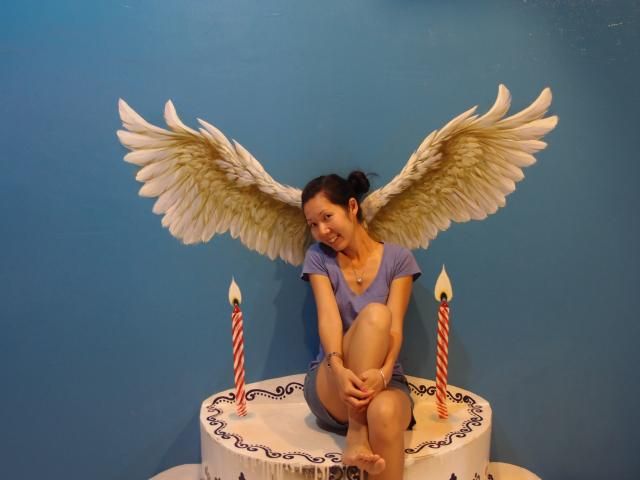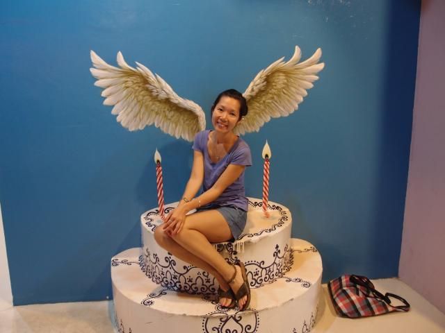 可知識這個蛋糕是最多遊人坐上去拍的, 每個人, 都希望自己是可愛的生日天使吧!