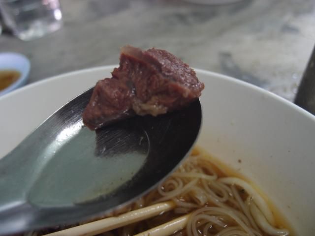 怎麼說呢? 它的湯頭帶著濃濃的牛肉、牛骨味道, 卻沒半點燥味; 喝起來很順喉, 還有些帶甜和微微的滷水、藥材味道。牛肉都切成小丁方塊, 吃得出經過多小時的燉煮, 輕輕的一咬就可以了, 沒牙力的老公公也可吃得到呢!