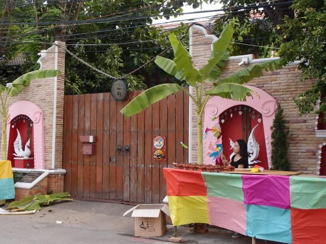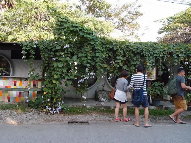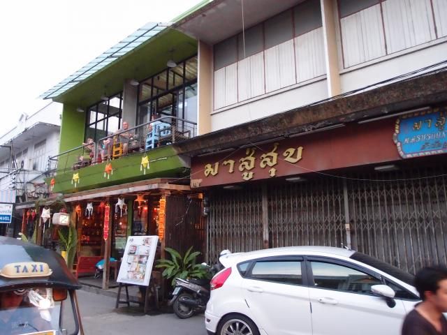 這小酒店附近都是一些小商店, 四年前首次來清邁, 對面的這個賣藝術品的店舖還是我上cooking class老師Yui的餐廳呢。只是因為她教學的業務已夠忙, 而且更想多花時間去陪伴兒女, 餐廳也就要放棄了。對啊! 人生追求的是快樂, 既然cooking class可支持她生活有餘, 何不享受天倫呢?