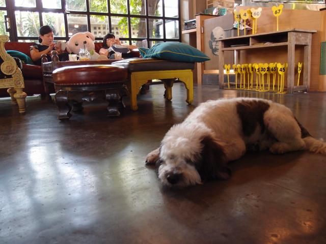 還是小狗厲害, 懶洋洋的睡在吹著空調的柚木地板上。也無視於人們不停的走過、又或嘈吵的環境、又或像我一樣的在拍牠...也許對牠來說, 這才是安全感吧。