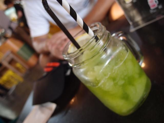 老公因為天氣熱又陪我無聊地走了那麼多地方, 再加上遇上很多嘈吵的遊人而開始沉默起來了...這時候, 我便要裝作看不見一樣, 悠悠的嘆著自己的冰淇淋。侍他心情好一點的時候, 就是點了很久的特飲都來了, 讓他喝幾口這柸圖片上十分吸引的Sparking Mint, 果然, 他像回過神來, 再不兇巴巴了...