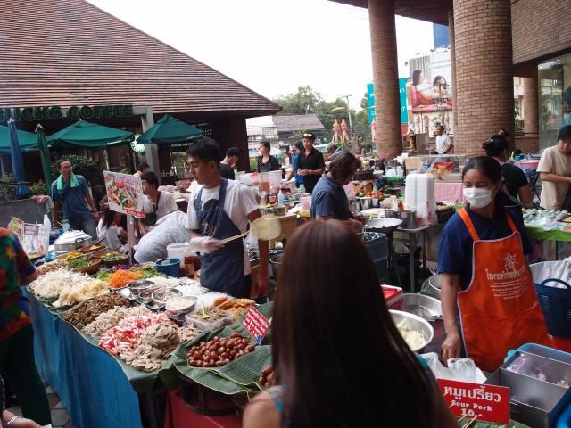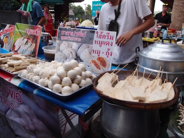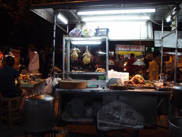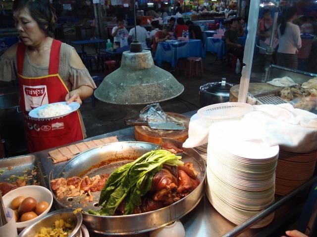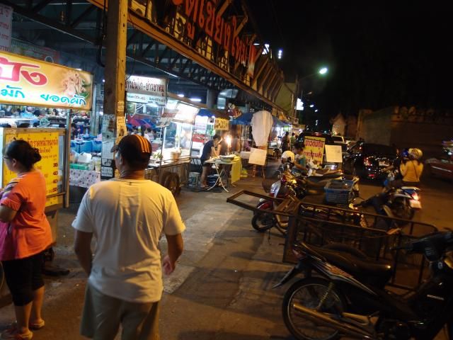 東北阿姨們知道我們想吃路邊攤, 就叫我們坐5分鐘車往Chang Puak Gate她們叫Doo Chiang Mai的食物夜市。其實以前也曾來過這, 都是逛完Sunday Market時候來這裡吃個宵夜的地方。來到這裡, 有粥、有滷水豬腳飯、雞飯、小炒、甜品、現成的咖喱和菜的buffet、串燒、Roti和現打的果汁都有。