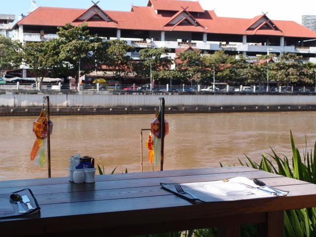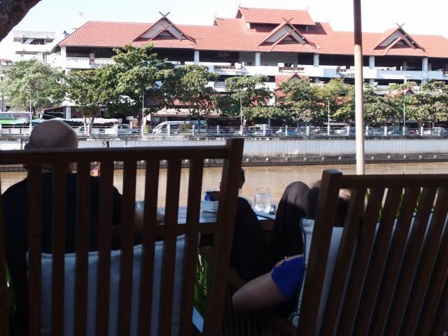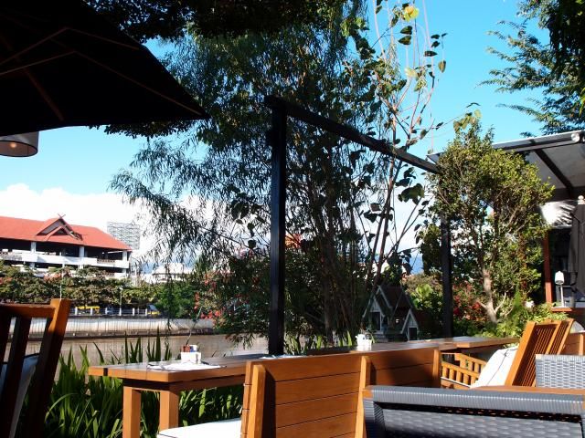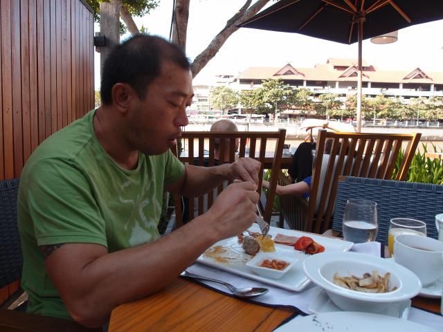 戶外的感覺和昨天的差不多, 我們選了個樹蔭下的位置, 溫柔的微風、凉凉的早上...我們就在這坐上了一個多小時, 望著河上偶爾的長尾船, 呼吸著帶青草氣味的空氣。